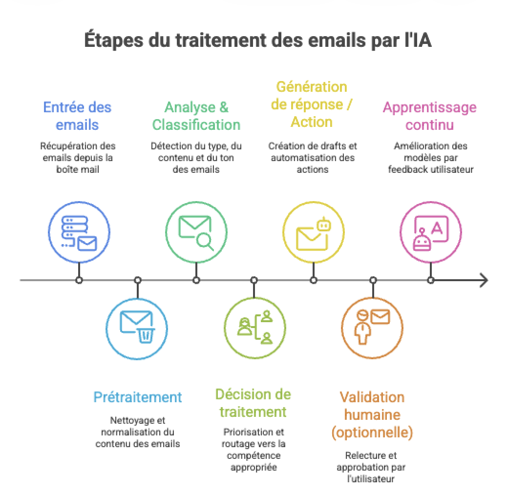 Oubliez les filtres basiques. Un assistant IA apprend de vos habitudes, comprend vos priorités et gère vos mails comme si vous aviez un secrétaire personnel, disponible 24/7.